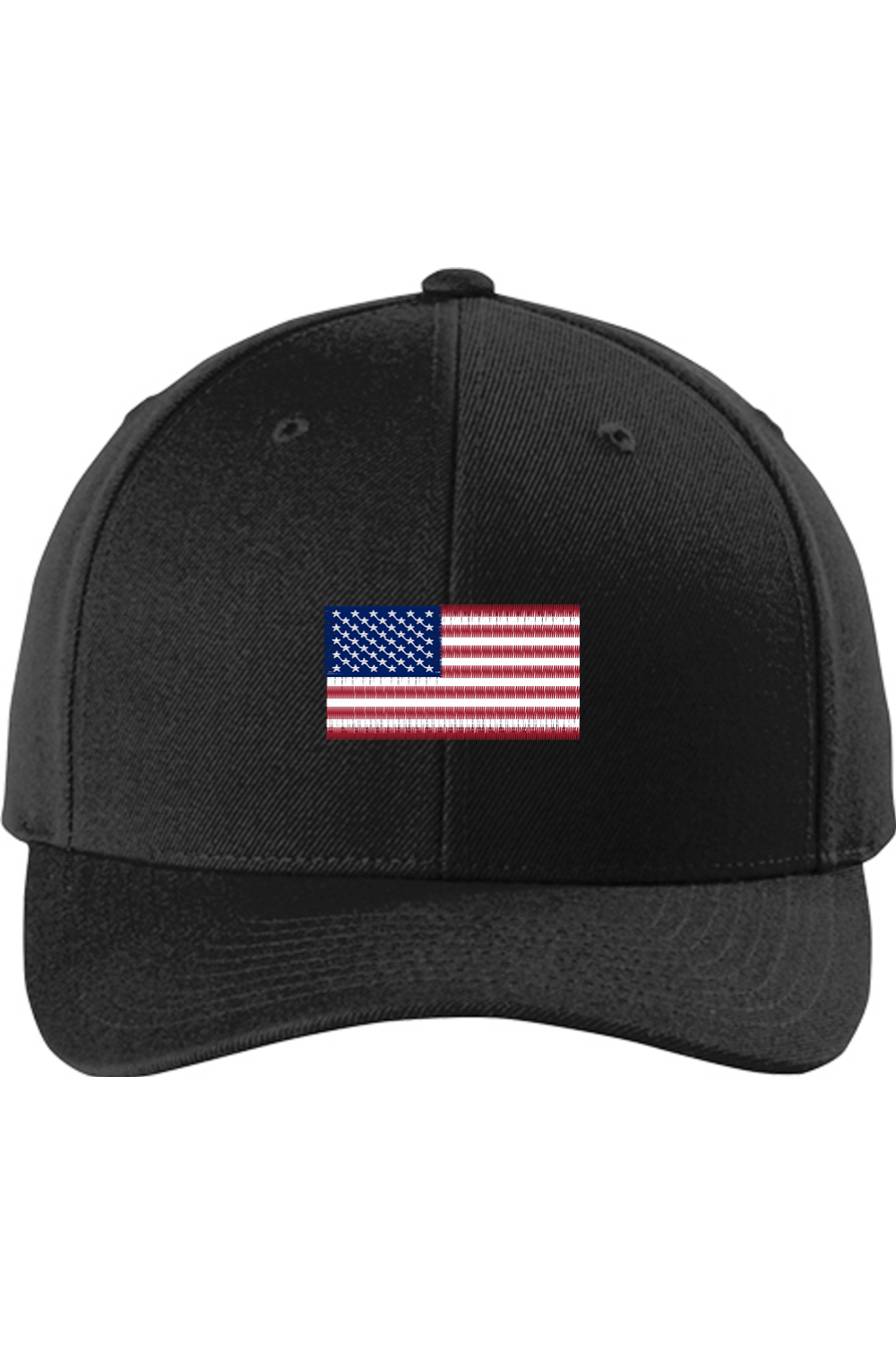 Fabric: 80/20 acrylic/wool, Structured, mid profile, 7-position adjustable snapback. One Size fits most. Embroidered American Flag graphic