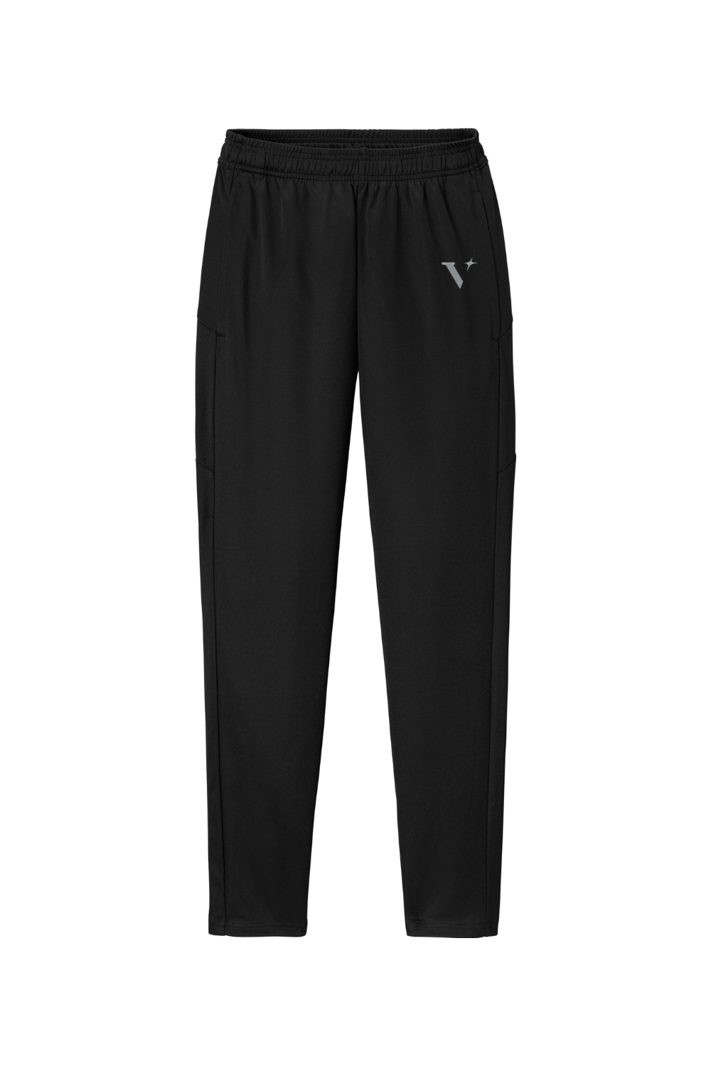 The ball is in your court with the moisture-wicking pant that is perfect for warming up or supporting the team.. 100% recycled polyester double knit. Tag-free label. Drawcord waist. Side slash pockets. Tapered leg with extended side zipper for easy removal. Colorblock self-fabric detail on legs